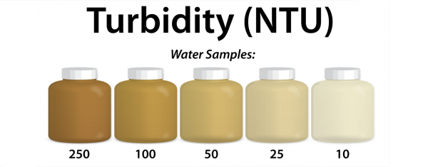 Nguyên nhân gây ra độ đục của nước là do các hạt lơ lửng trong nước: tảo, bụi bẩn, khoáng chất, dầu thậm chí là vi khuẩn. Nước có càng nhiều các hạt lơ lửng này thì độ đục của nước càng cao và độ đục của nước có thể ảnh hưởng đến màu sắc của nước.