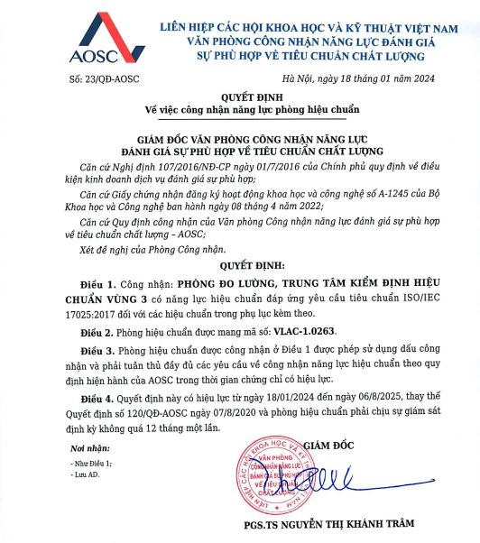 Trung tâm Kiểm định Hiệu chuẩn Vùng 3